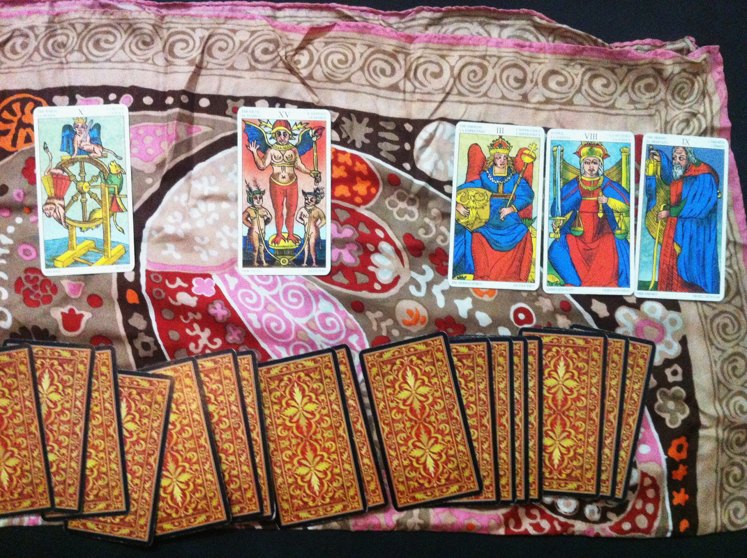 Once the question was clear in my mind, and after focusing, I drew the cards as follows. The picture is just below.